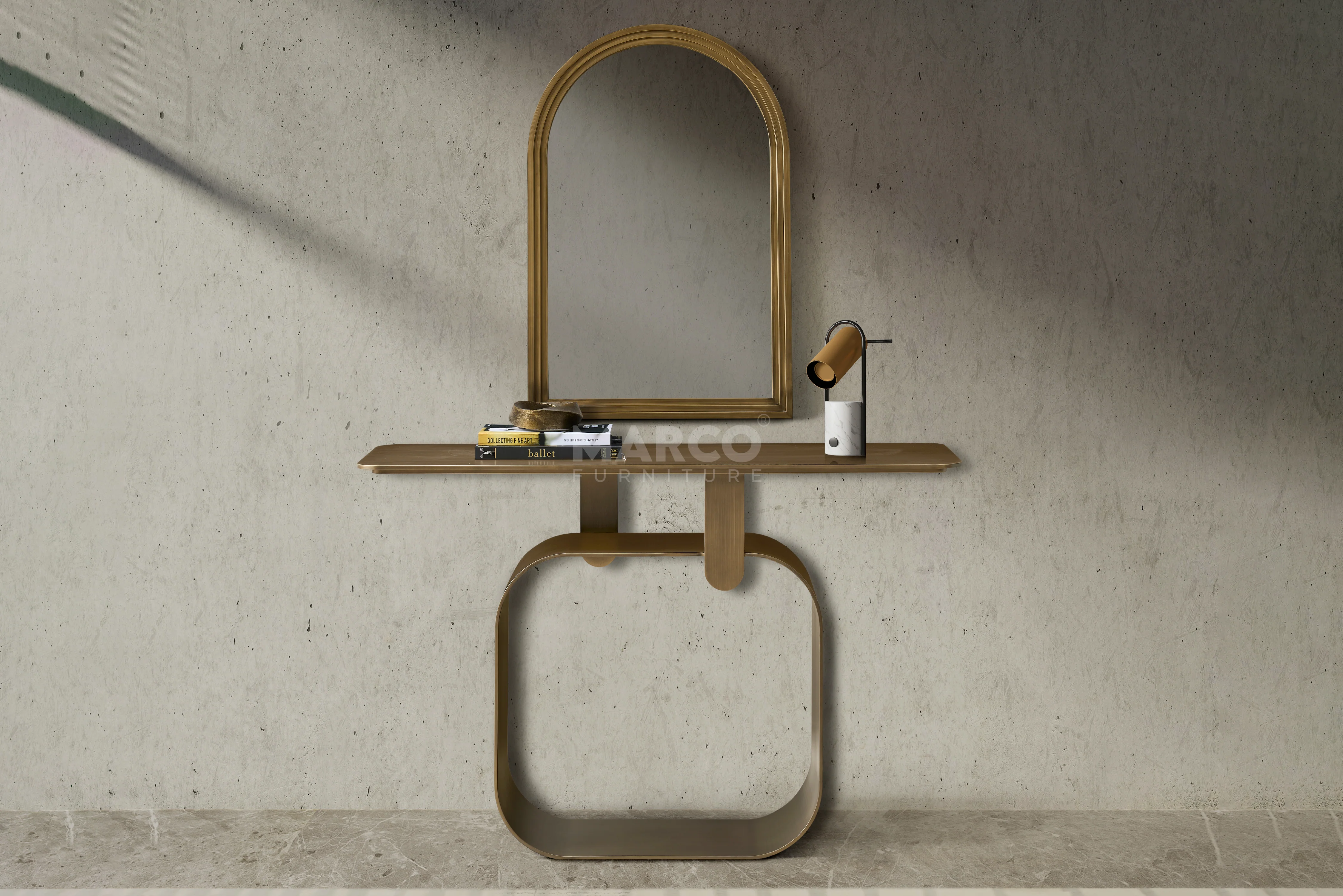 The Artiss Console Table offers both a visual statement and practical function in one stunning piece. Built from high-quality metal and powder-coated in antique brass, this table provides a sturdy display space. Its base is designed with a unique hollow frame, showcasing an artistic approach.