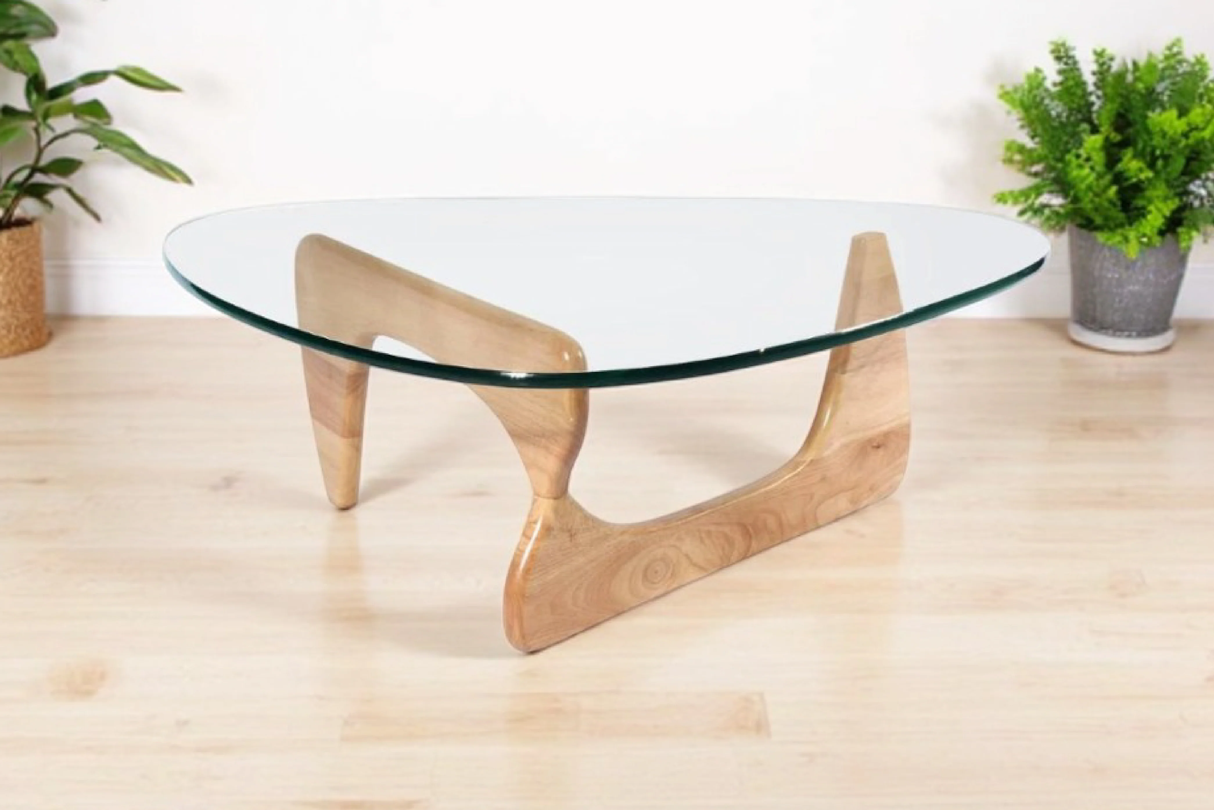 Noguchi Glass Coffee Table with 15mm Tempered Glass Top and Ash Wood Legs