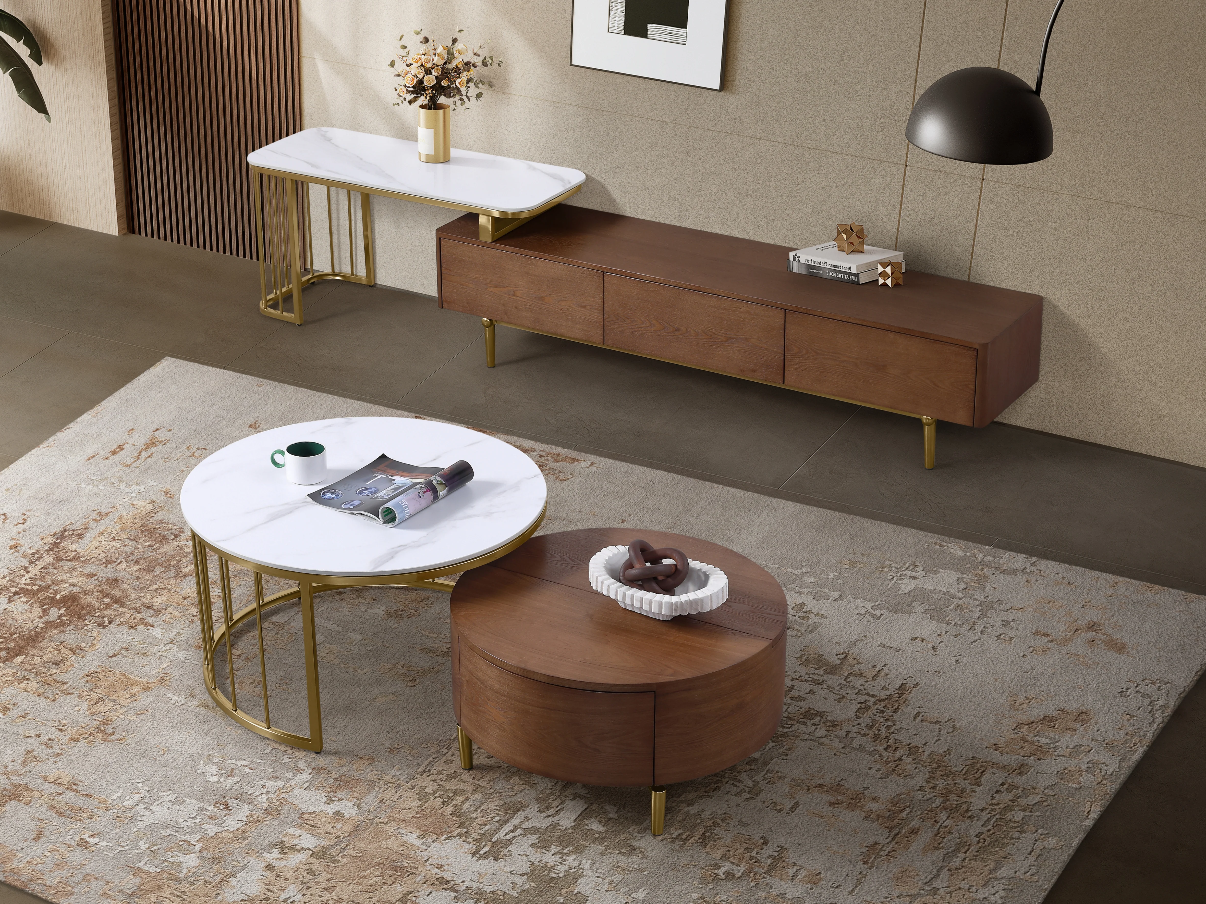- Extendable Sintered Stone TV Arc with Gold Base